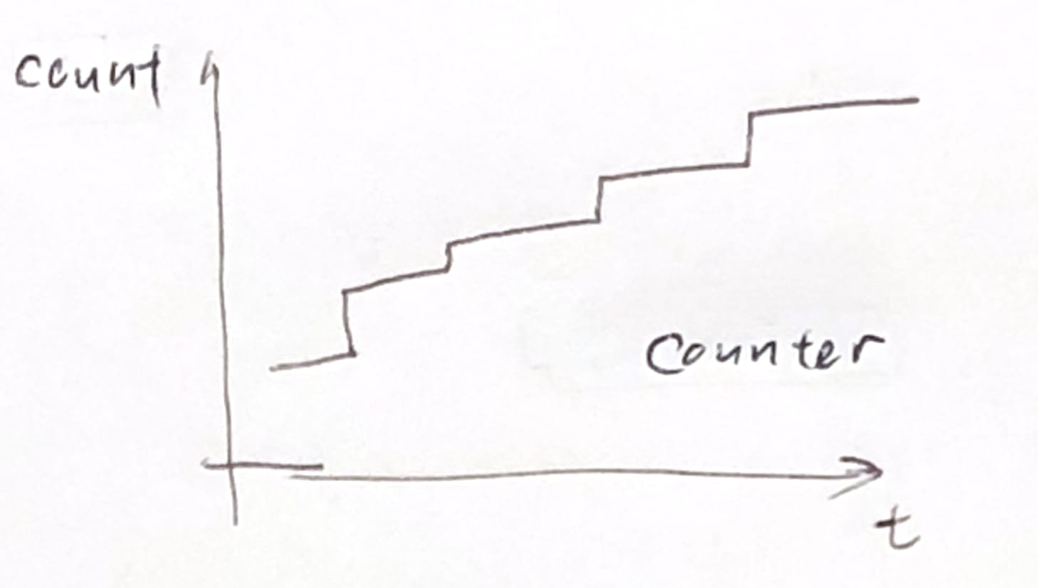 見ての通りの積み重ね式 Counter タイプ。常に時間 t の増加に伴い、増加するグラフとなります(つまり、any t にて a[t+1] - a[t] >= 0 となるような a)